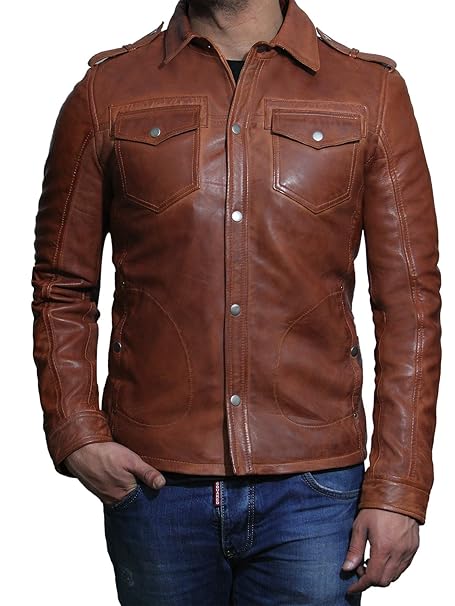 Brandslock Hombres Chaqueta De Piel De Cordero De Cuero Para