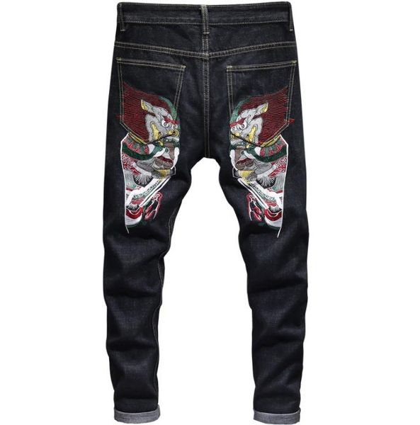 Compre Estilo Japones Mens Casual Jeans Tattoo Bordado Skinny Fit