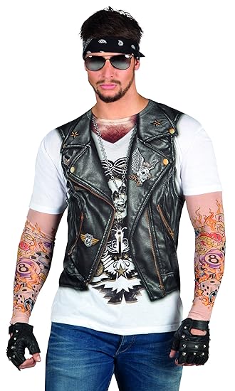 Faux Real Playera De Motociclista Para Hombre Con Mangas De