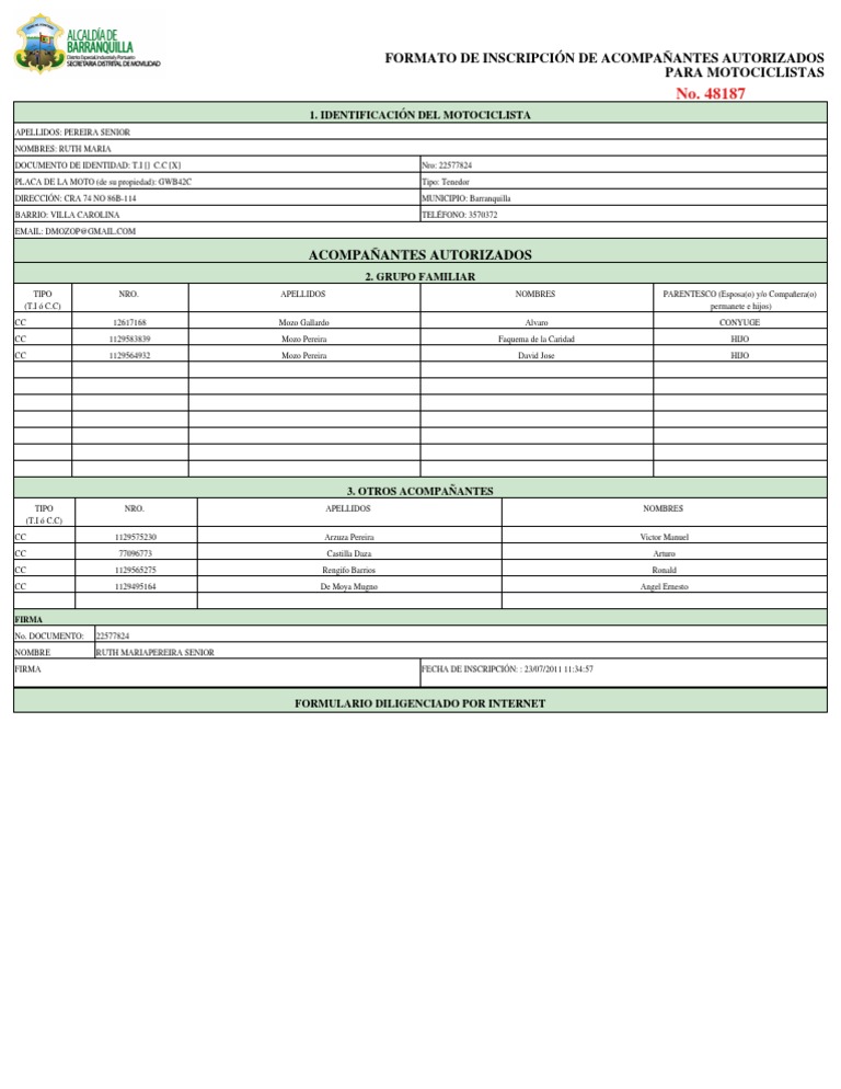 Pdf Identificacion Del Motociclista Acompanantes Autorizados 2