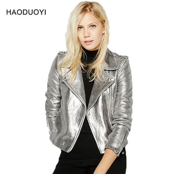 Compre Moda Guapo Metal Plata Pu Chaqueta De Cuero De La